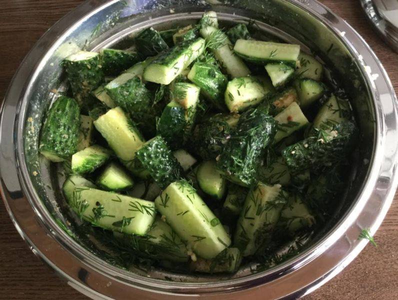 Быстрота приготовления оправдывается тем, что овощи мы нарежем четвертинками. Таким образом, через мякоть соль скорее напитает их. А чеснок с укропом выполнят свои ароматные свойства. Такую вкуснятину я делаю очень часто в урожайный сезон.